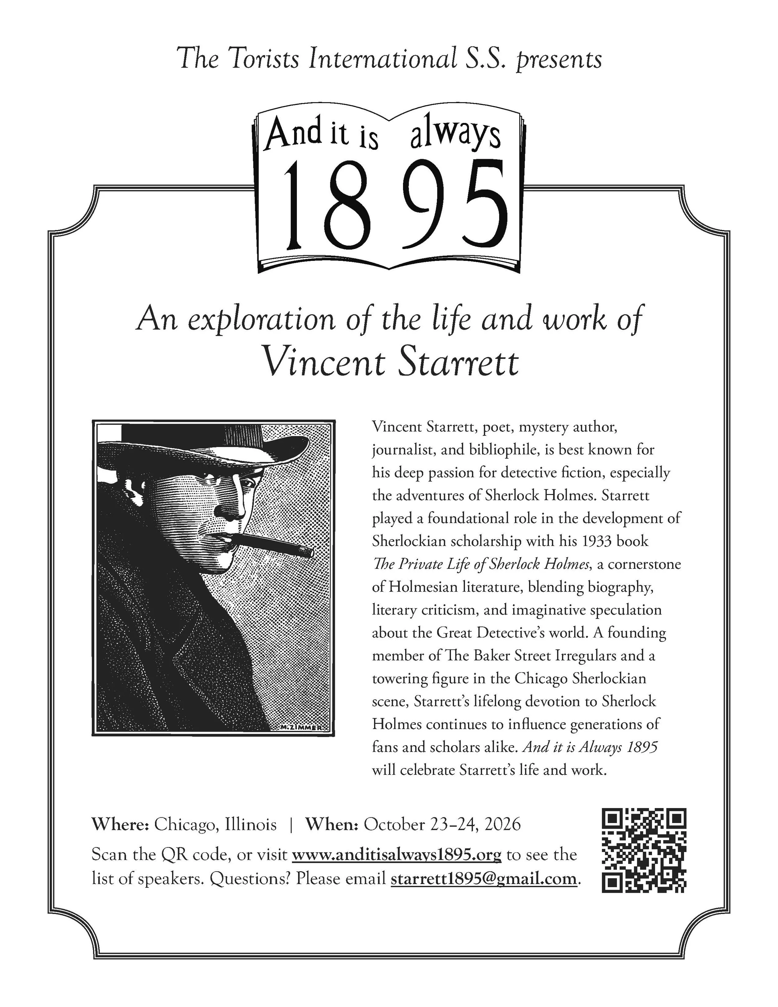 “And It Is Always 1895” is the brainchild of Jonathan Shimberg and Linda Crohn, with the help of many members of The Torists International SS. There is a stellar lineup of speakers who will offer diverse perspectives on the life, writings and influence of The Last Bookman.